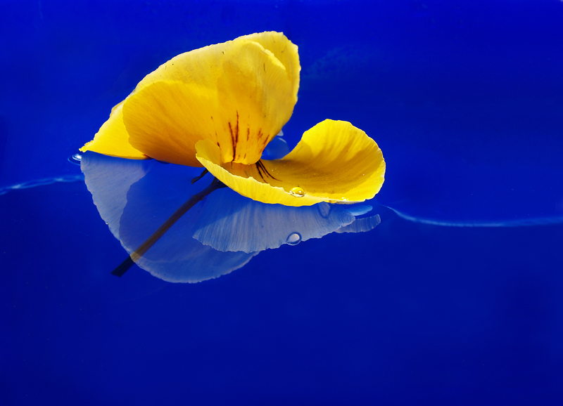 certo ..ma è davvero molto molto semplice..e forse l'ho già spiegato per un altra foto di questa serie nella mia gallery..cmq ..basta appoggiare un fiore ASCIUTTO sulla superficie dell acqua..in questo caso ho usato una bacinella di un bel blu