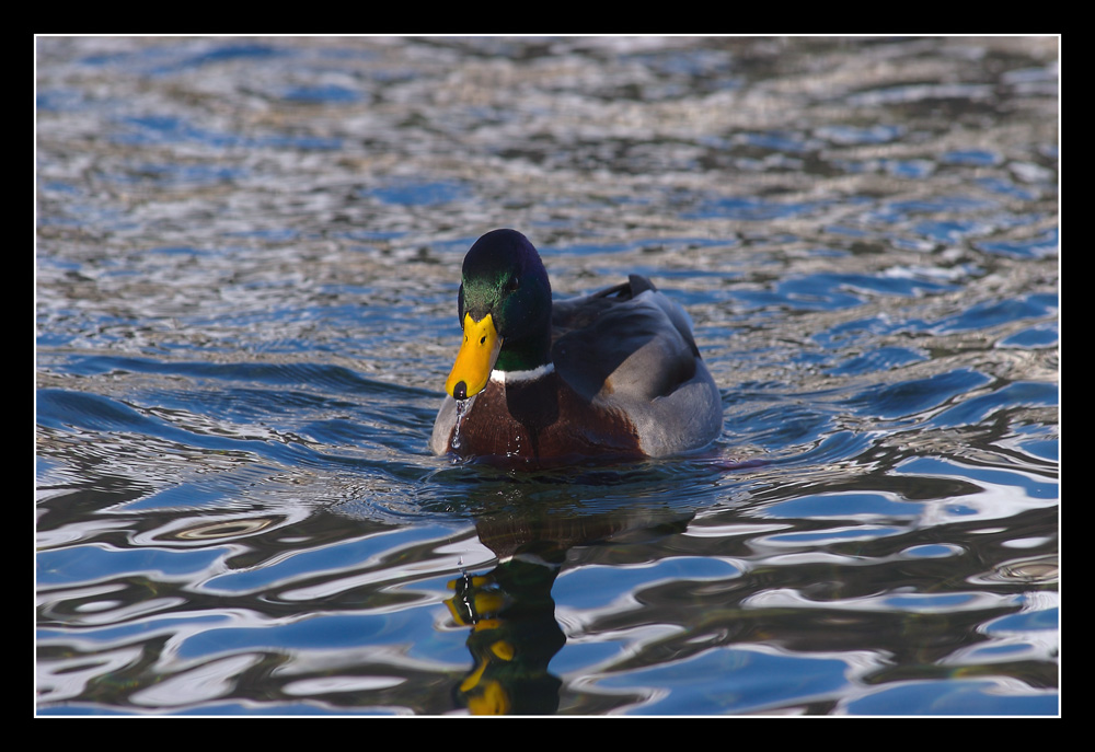Sono belli i riflessi della luce nell'acqua ed è bello anche il riflesso del germano che però purtroppo è incompleto.