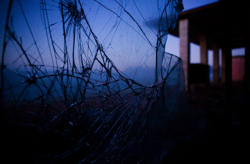| Molto, molto bella. Complimenti per come l'hai resa con una sapiente sottoesposizione. Molto riuscita anche a livello compositivo, con il vetro che sfumanel nero in basso, il suo pattern di linee di rottura, e lo sfocato della struttura sulla destra. Un insieme di elementi ben armonizzati in una composizione molto visionaria.