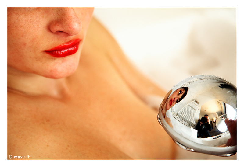 Bello il rosso delle labbra, belli i riflessi sulla sfera ... bello scatto!!!