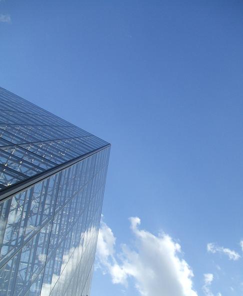 una foto geometrica, essenziale, basata su 3 eleemnti: la vetrata del louvre, la nuvola ed il cielo.