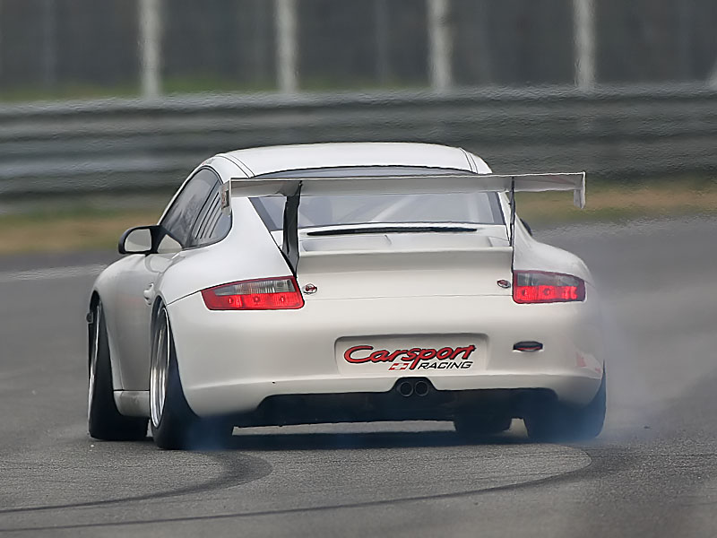 Mi piace molto come foto. Dal punto di vista compositivo mi piace molto come le strisce della sgommate che dall'angolo in basso a sinistra guidano lo sguardo sino alla macchina. Molto bello il fatto che si vede anche il fumo che esce dalla ruota.