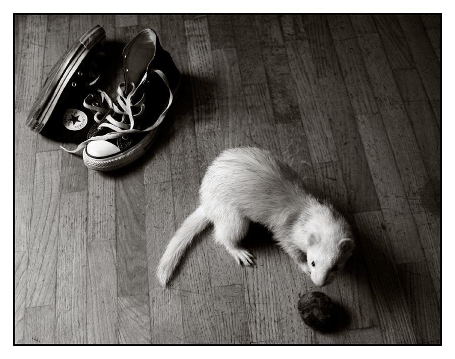 Molto simpatica!!!... carino il furetto! e anche l'accostamento nella foto delle scarpe da ginnastica che riempiono uno spazio che altrimenti sarebbe stato troppo vuoto!!!..