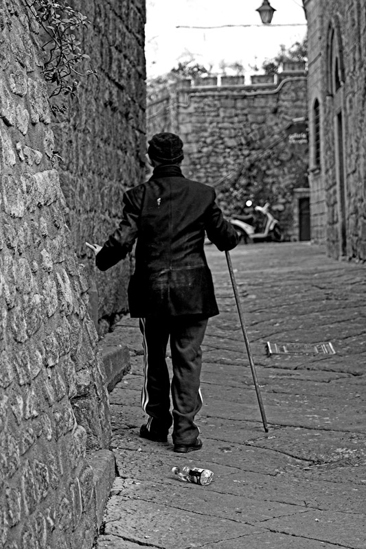 mi stupisce il fatto che un 'vecchietto' indossi una tuta adidas e poi il bastone non è un po' troppo lungo?!