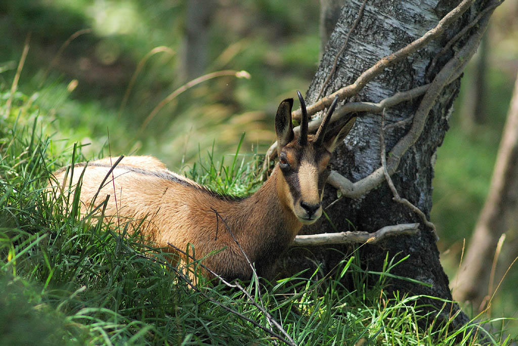 Mi piace molto.... la vedo come un ritratto ambientato.......intimo, nella penombra del bosco. I colori caldi del letto d'erba sul terreno in leggera pendenza e della corteccia dell'albero sotto cui di riposa il camoscio fanno da sfondo ideale alla morbidezza del quadro.