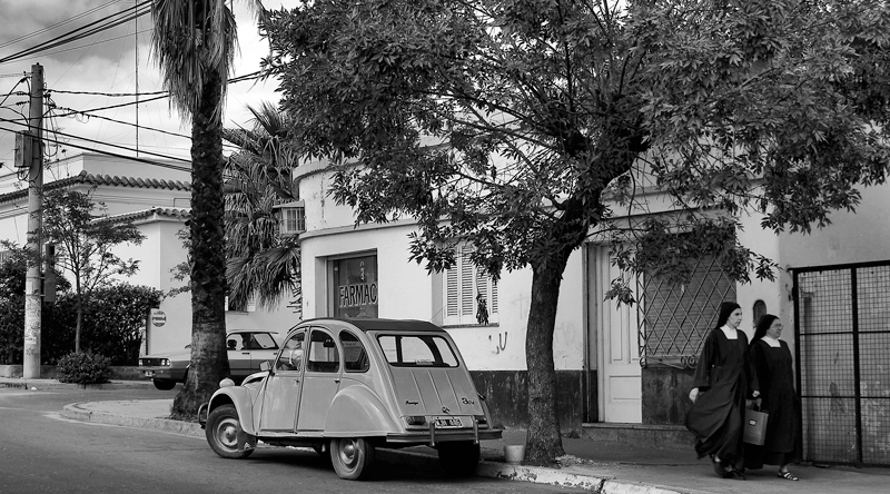 La foto si regge molto sul titolo, considerato che il legame tra l'auto e le due suore non è di facile percezione. Della composizione non mi convince molto la parte sinistra, che distrae dai soggetti. Ho provato questo taglio alternativo, spero non ti dispiaccia: