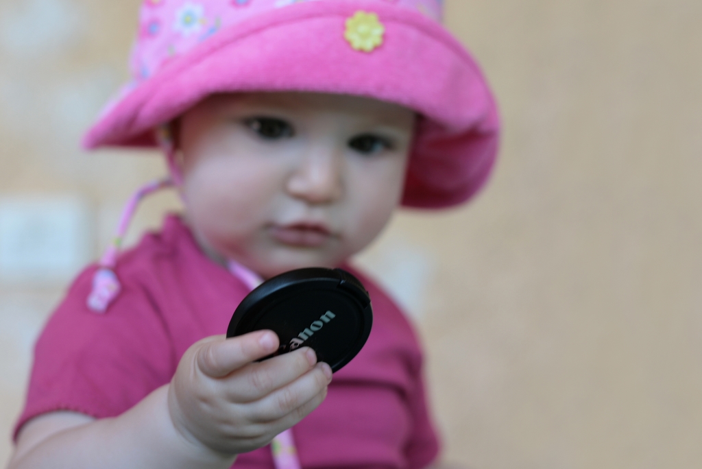 quando mi ha rubato il tappo dell'obiettivo mi è venuto in mente questa foto e ho messo a fuoco il copriobiettivo, ma sapete quanto si muovano i bimbi e tenerlo a fuoco mi è risultato impossibile!