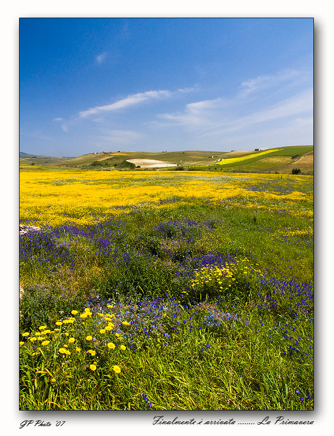 Intanto grazie a tutti, vado a pranzare con 3 commenti e ritrovo la mia foto con 11 commenti bellissimo. Grazie davvero a tutti. Small grazie per l'intervento, ma il mio intento era proprio quello di rendere al meglio il variopinto paesaggio primaverivile con quanti più colori e piani focali possibili ma tutti nitidi indistintamente. Ho ricercato i fiori in primo piano le colline in fondo e per chiudere quella striscia di cielo dove sono presenti le soffici scie di nuvole leggere trasportate dal vento. Ma la forza alla foto viene data dalla madre terra e con i sui colori. La tua interpretazione a voler dare più cielo fa si che hai messo l'orizzonte quasi al centro allontanando il punto di vista dell'osservatore. Ho voluto fare questa foto immaginando come una porta che si apre tirandola a se e si entra in questo posto per cercare e trovare la tranquillità e calma da un mondo sempre più caotico e rumoroso. Se in parte ci sono riuscito a trasmettere questo, vorrà dire che dei passi avanti li ho fatti e questo mi porta a cercare di fare sempre meglio. grazie ancora, ciao Biancoenero, detto da te che sei rimasto attratto dai colori per me ha una grande valenza. Ivo sono davvero contento che questa mia foto abbia attirato la tua attenzione.