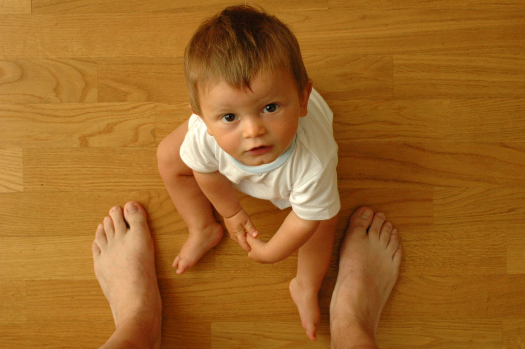 però proverei a portarla in bianco e nero contrastandola, sai è un pò monocromatica , il parquet la pelle del bimbo i tuoi piedi sono nella versione a colori un pò simili (cromaticamente parlando).