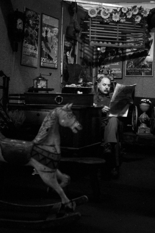 un'ambientazione resa intrigante e un po' misteriosa tanto dalla penombra quanto da quel cavallino (ma cos'è, un bar, una sala da te...)