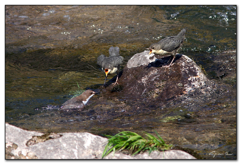 Primo giorno fuori dal nido per i merli acquaioli....la luce delle 11 del mattino è un po' dura, con forti ombre e riflessi accecanti...