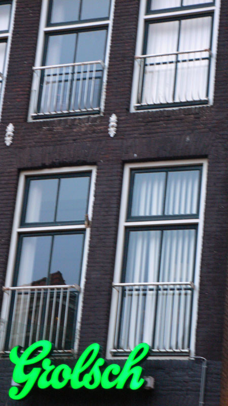 Lo scatto presenta dei difetti tecnici che non lo rendono particolarmente attraente sotto il profilo strettamente estetico, mi riferisco al mosso/sfocato. Si cerca di sfruttare la geometria delle finestre per riprodurre l'insegna in un fotogramma gradevole, ma il risultato è un po' approssimativo (era un caso in cui avrei cercato di sfruttare quanto più possibile la simmetria delle finestre piuttosto che tagliuzzarle in maniera irregolare). Il taglio in verticale non mi sembra del tutto giustificato, considerato il fatto che individuata l'insegna, che non passa del tutto inosservata non si trovano più stimoli per "salire" con lo sguardo ad esplorare il resto del fotogramma.