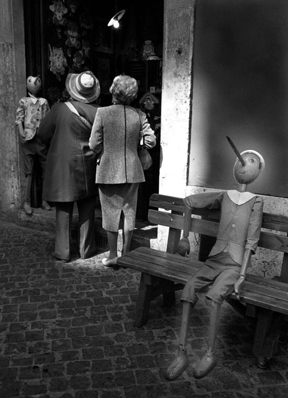 Ottimo b/n, ben composta e con un'atmosfera fiabesca, tutto attira la mia attenzione, la luce sul volto di pinocchio, il lampadario all'interno del negozio, i due personaggi che osservano, ....insomma molto bella complimenti, anche per quel diavolo di obiettivo Wink