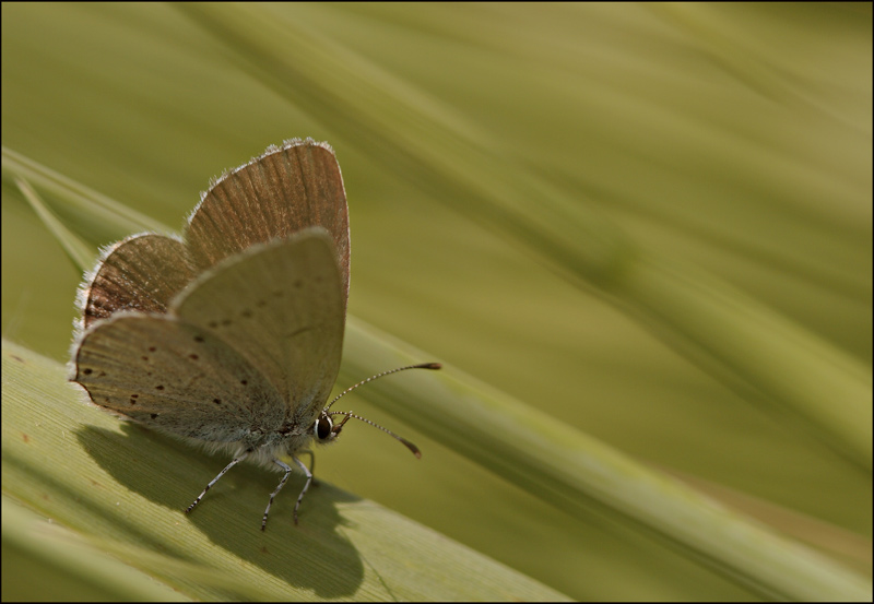 anche lo sfondo mi piace parecchio, sucuramente avrai trovato qualche difficoltà con qualche filo d'erba tra te e la farfallina!!!!!