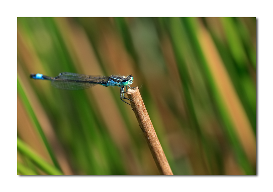 belle le linee, lo sfondo molto presente ruba quasi la scena alla piccola libellula  |