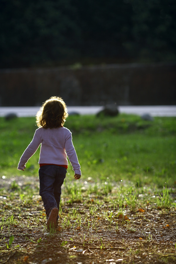 La tenerezza di questa piccolina con la maglietta rosa.....circondata da un alone di quella luce a cui va incontro..... e.. ai suoi piedi... la giovane vita dell'erba di un verde tenero... che fora il terreno...........