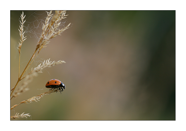 Ottima compo, bella la cocci e belli i file della tela del ragno. Ora goditi la luce che illumina la coccinella e lasciati dietro lo scuro a dx. Con simpatia Ok!