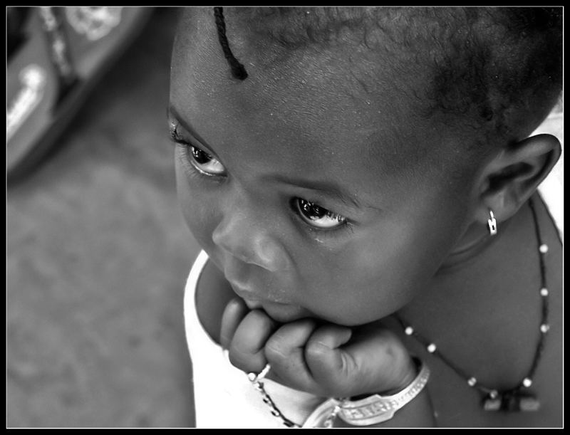 questa è la tipica foto che ti porta a guardare oltre la tecnica, cercando di immedesimarti nella scena e di vivere appieno la profondità dello sguardo e la morbidezza dell'innocente espresisone della bambina. è uno scatto favoloso, ottimamente virato in B/N