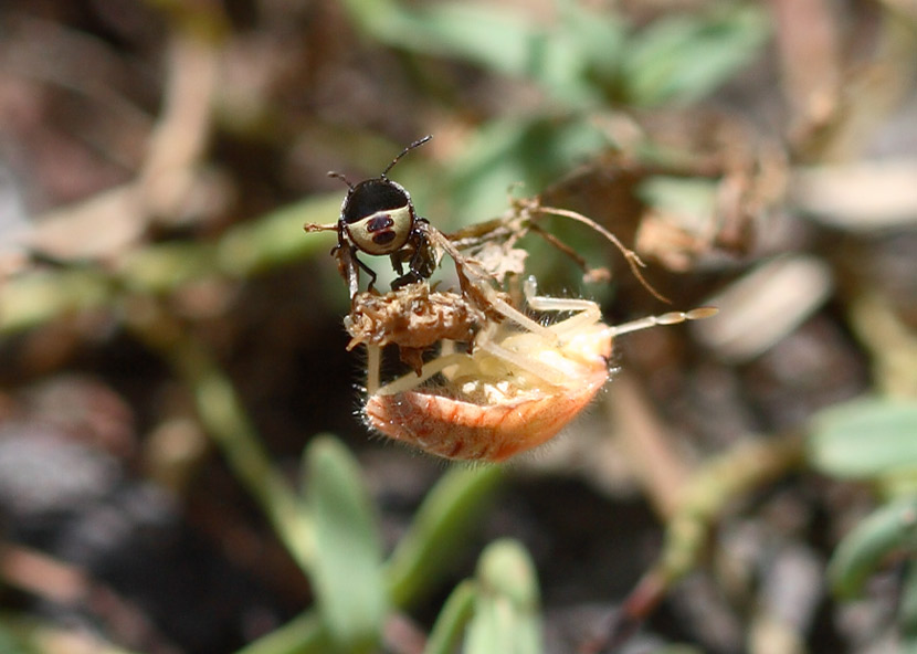 Ciao Pì, veramente avevo notato in questo groviglio qualcosa di strano, ma non riuscivo a capire di che si trattava. Con l'ingrandimento sul piccì è venuto fuori questo insettino che sembra uscito da un cartone. Smile