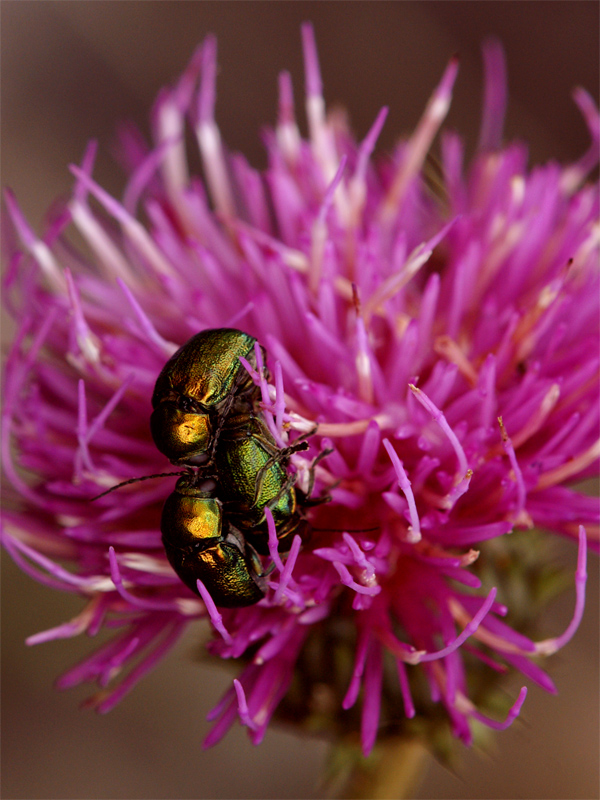 Sembra che la luce del tramonto baci questi coleotteri.  |