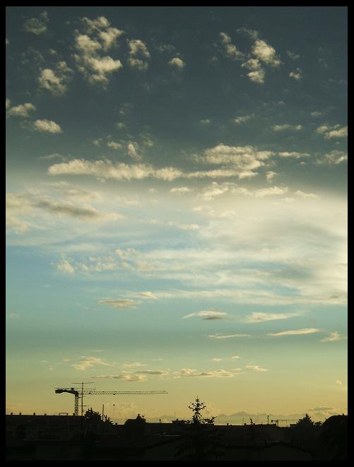 | il cielo mi piace molto, il titolo segnala un pensiero difficile da capire. mi pare un crescendo di blu sul cielo, fino ad arrivare ad un qualcosa di minaccioso, in correlazioni con immagini di società industriale. mi pare interessante. complimenti |