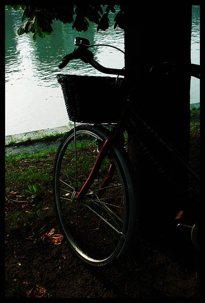 ..in ogni caso, questa è una foto coraggiosa, nel senso che hai voluto privilegiare la luce dell'acqua a discapito di quella del primo piano sulla bicicletta e sull'albero..