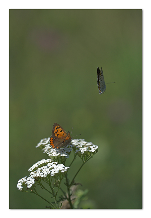 Il mio cervello infatti, trainato dai sentimenti che questo scatto mi ispira, mi fa percepire come più lontana la farfalla volante che in realtà è semplicemente un po' più in alto, ma rigorosamente sullo stesso esiguo piano focale Wink