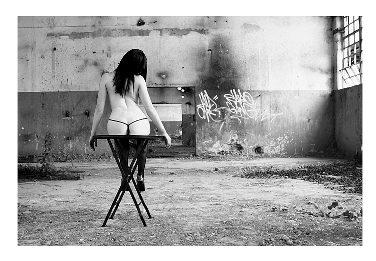 Bella Nikki!!! A me le tue foto piacciono molto...sia come ambientazione che come b/n...bella anche la composizione dell'inquadratura anche se...anche stavolta la modella è un po poco naturale nel suo essere seduta. Ha le mani rilassate quasi a peso morto...ma la schiena è rigida per sostenere il busto...bhò...risulta un po strana alla vista!