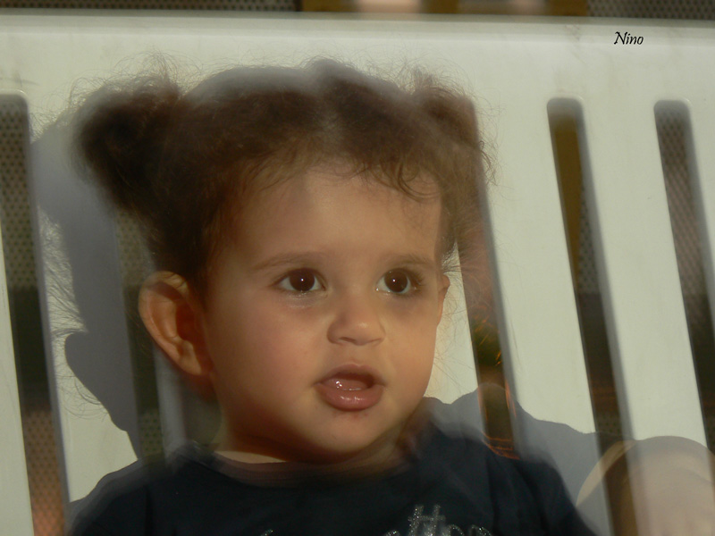 Hai ragione la bimba ha un'espressione stupenda, ma la foto ai lati è completamente mossa. Ebbene è stata scattata in condizioni di luci pessime, infatti il mosso è pienamente comprensibile, ma quello che mi ha colpito è proprio il contrasto tra il mosso esterno e la parte centrale a fuoco. Tutto questa mi dà l'impressione che la bimba sia avvolta in una lieve nebbiolina.