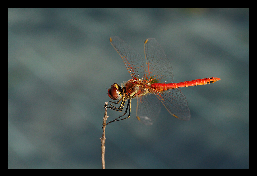 molto bella, ottimo contrasto tra la libellula e lo sfondo, il rosso mi sembra bello carico, ma penso sia proprio la libellula così, ne ho viste anche di molto più rosse......