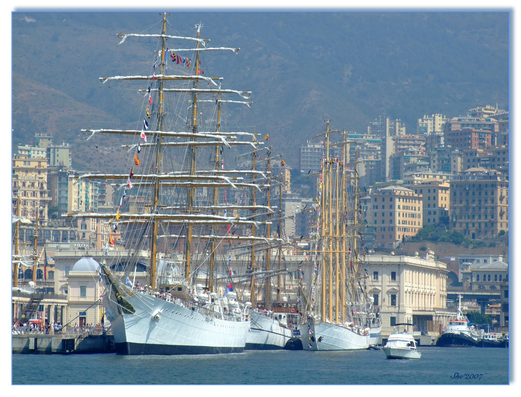 .....penso che la prima a sinistra sia la nave scuola argentina "Libertà".......della "Mir" si vede la striscia azzurra in fondo......che belli i velieri in porto, peccato la luce troppo forte e l'esercito di turisti, ho fatto una foto simile, ho solo provato a sfocare i palazzi ma nn ci sono riuscito, ciao