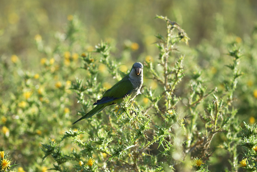 Un pappagallo verde in mezzo al verde!Simpatica.