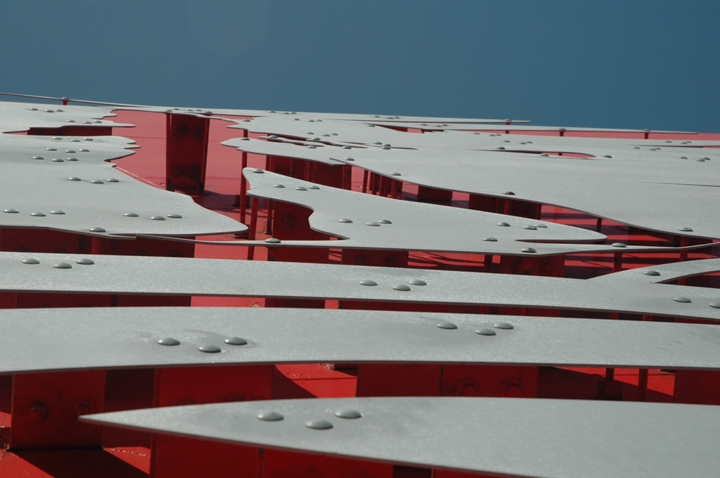 bella, un insieme di forme e colori che formano un paesaggio futuristico. avrei ruotato legermente il tutto a sx e dato maggior saturazione ai colori con un bel blu al cielo! Smile