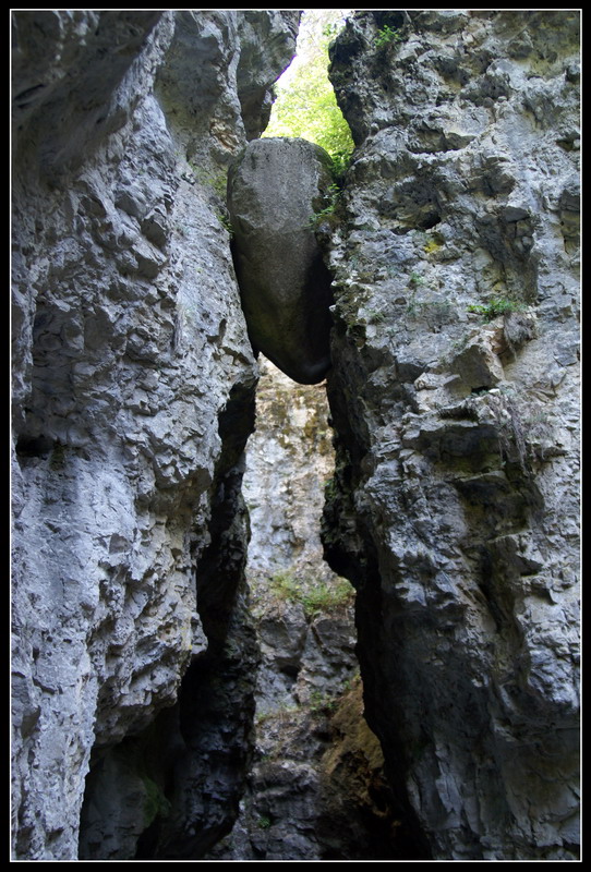 Masso rimasto intrappolato nel Canyon del Rio Sass (TN) dopo il ritiro dei ghiacci dell' ultima glaciazione.