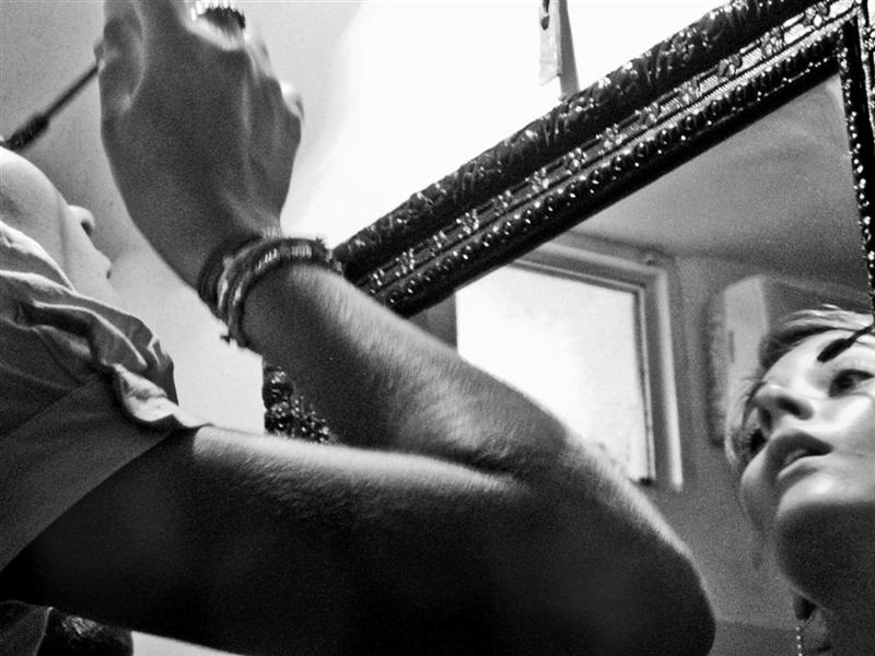mi piace l'uso dello specchio per mostrare il volto e guardandola bene anche una cosa che al primo sguardo sembrava uno sbaglio ora capisco che invece aggiunge qualcosa, secondo me molto, all'immagine. Mi riferisco ai tagli delle varie parti, la cornice, il braccio in basso e la mano in alto, la spalla a sinistra. Ho cambiato idea su questi "dettagli" perchè mi sembra che fatti come sono allarghino la foto, fanno sentire l'ambiente circostante anche se non si vede. mi piace anche molto l'espressione del viso, mentre quello che non mi piace è quella che sembra essere peluria bionda sul braccio, forse gioca in questo avere il braccio sfuocato così prepontentemente in primo piano...