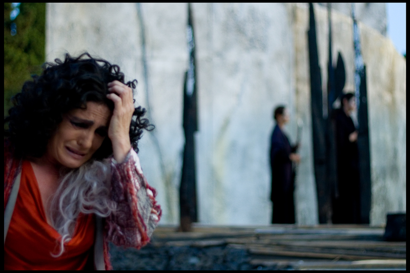 Deianira a Trachis attende in esilio il ritorno del marito Eracle. Una splendida Micaela Esdra protagonista delle Trachinie presentate a Siracusa per il XLIII Ciclo di Rappresentazioni Classiche.