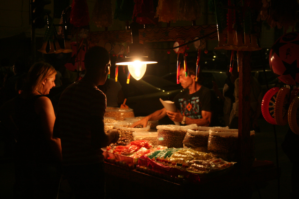 Vista l'impossibilità di "immobilizzare" il venditore senza micromosso con tempi così lenti, avrei personalmente preferito mettere a fuoco perfettamente le varie cose sul bancone. L'unica cosa che invece risulta a fuoco meglio delle altre è un elemento "esterno" che tra l'altro è anche di disturbo, ovvero quelle ruote in gomma poste sull'estremità destra della foto