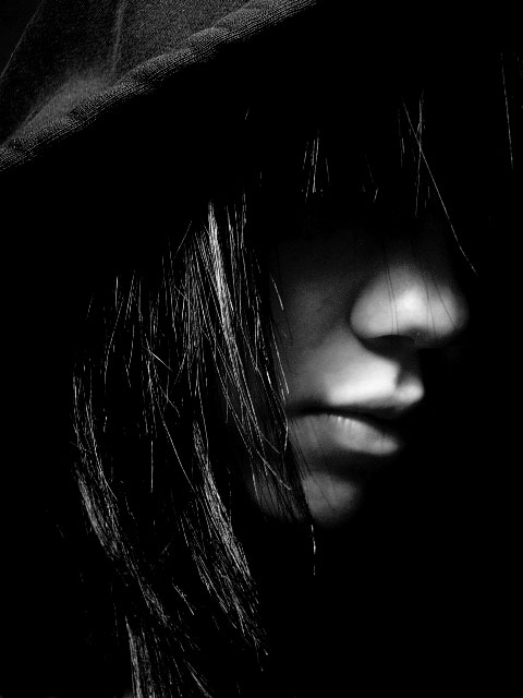 ...fermo restando che le regole esistono ma poi è importante come ciascuno "sente" il proprio scatto, ...devo dire che questa ultima versione mi emoziona di più proprio per questo buio, ...questa nerezza di più ampio respiro che pare compenetrarsi con il volto ed accentuare il suo "indietreggiare" e nascondersi.