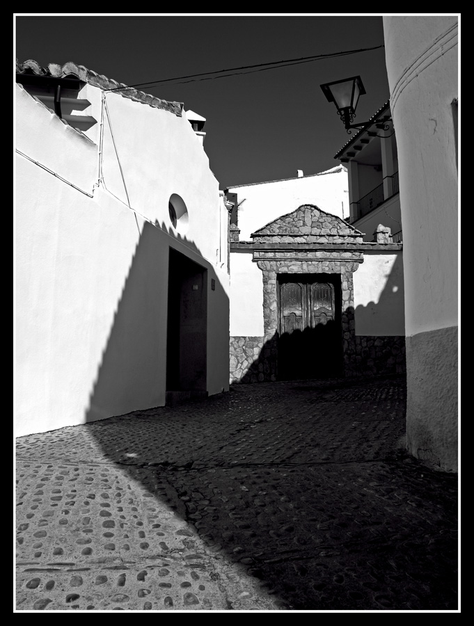 Il muro bianco illuminato mantiene il dettaglio, quindi credo cada sulla zona IX o quasi, mentre quello in ombra sulla destra nella zona VI. Il valore di riferimento, il grigio medio, credo vada a posizionarsi sulla pavimentazione.