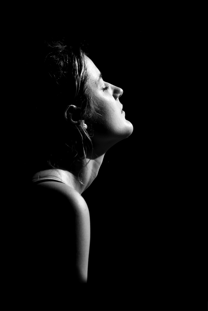 Pare che la modella stia respirando ad occhi chiusi il calore della luce che la trae dall’ombra, ...quasi sentisse l’urgenza e la forza di emozioni che risalgono in superficie, dal profondo del proprio orizzonte emozionale.