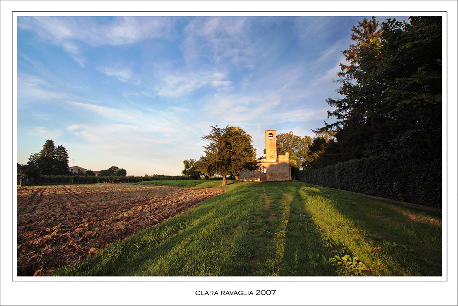 Stavo per tornare a casa a mani vuote.... quando ho buttato lo sguardo a destra, subito dopo una svolta per un viale alberato che mi riportava sulla provinciale per RA.... e ho visto, nella tranquillità e nel silenzio, questa chiesetta....