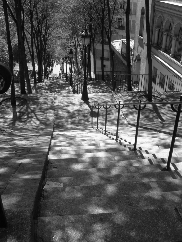 Interessante con quei giochi di ombre che si fondono con le linee dei gradini.