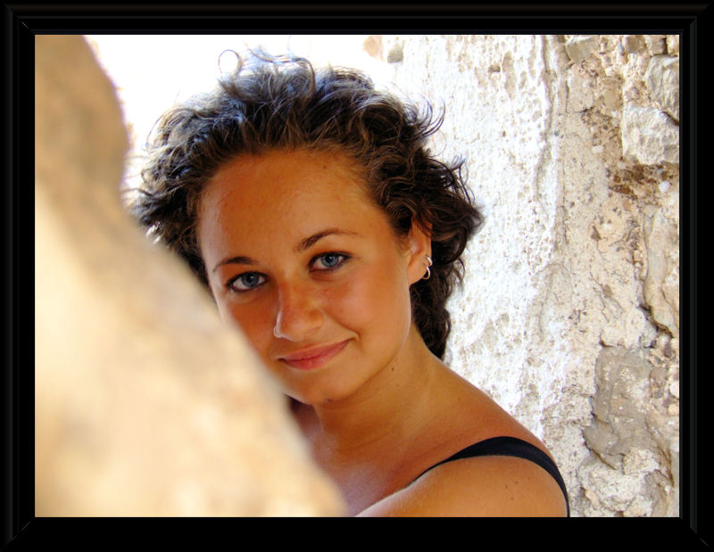 Non mi piace la luce sulla roccia in primo piano, inoltre la roccia ha tagliato un po il viso della modella.