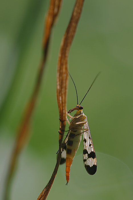 Grazie Td, mosca scorpione femminuccia! Ero in controluce, e senza flash, ma la luce sulle ali mi piaceva troppo. E poi era buffa appesa allo stelo secco!!!