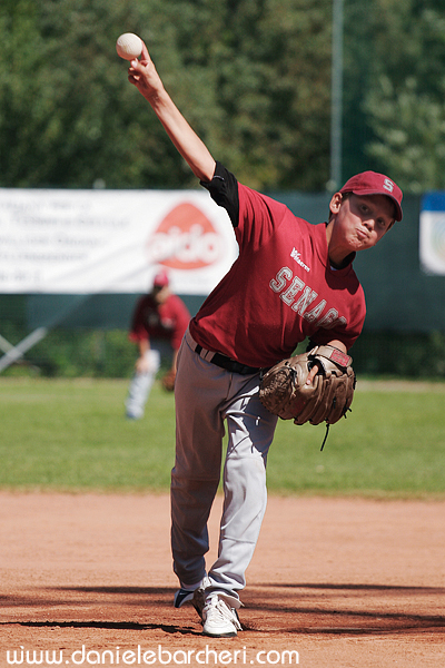 Secondo me però la ripresa frontale del lanciatore non da l'idea del dinamismo del gesto. Non condivido le critiche allo sfondo perchè è quello del campo di gioco, non te lo puoi scegliere e spesso nonostante basse sensibilità e tempi brevi in pieno sole non puoi aprire abbastanza il diaframma.