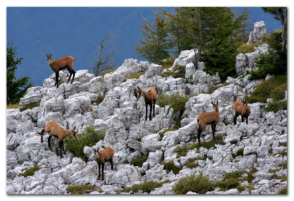 Non vorrei essere cattivo, ma secondo me è lo steso camoscio preso in diversi scatti e attaccato con photoshop sullo stesso sfondo.