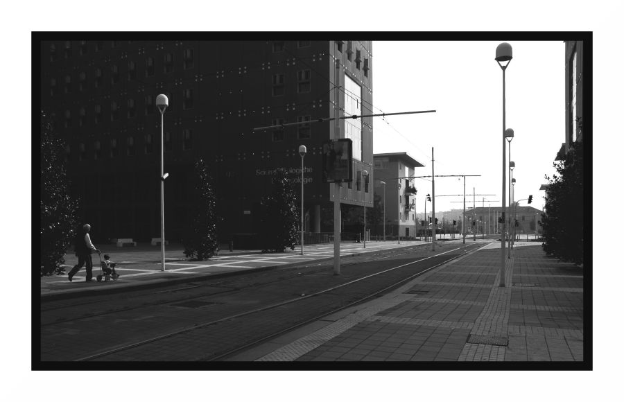 | Clara Ravaglia ha scritto: | Un deserto dei Tartari cittadino.... scandito dalle simmetrie degli alberi e dei lampioni, dagli spigoli dei palazzi e dai tagli netti che la luce del sole disegna sulla pavimentazione... Un profondo senso di solitudine silenziosa... che crea un contrasto potente con la affettuosa consuetudine di nonno e bambino... che scaldano di tenera affettuosità la desolazione dell'ambiente, esorcizzandone il senso di alienazione e distacco con il loro dolce presenza....
