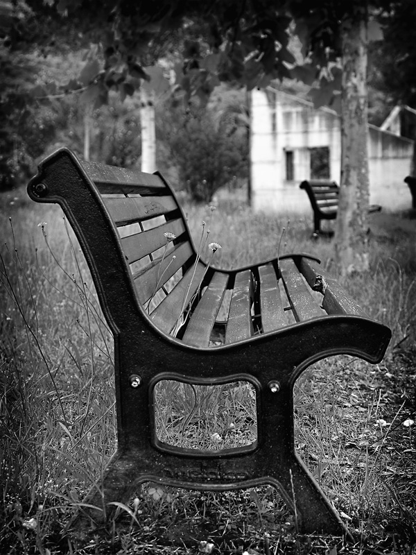 Secondo me va molto bene anche con lo sfondo così.I fiorellini che sbucano fanno capire che la panchina non viene usata spesso,una bella pdc che oltre a dare tridimensionalità, fa capire ancor di più il senso di abbandonato...uno stabile con intonaco sporco, l erba poco curata, altre panchine gemelle vuote ed un albero a far ombra a nessuno.Mi piace tantissimo...(sono gusti) Very Happy