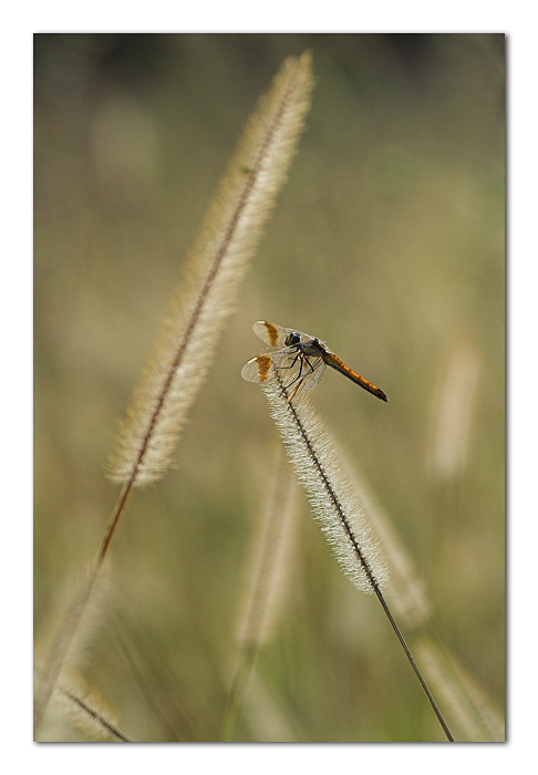 Palificazione posizionata in modo ottimale e senza troppo clamore fanno da supporto ad un'annoiata libellula.