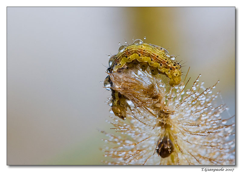 Ottima la nitidezza sul piccolo bruco. Le goccioline d'acqua valorizzano molto bene il soggetto. Quoto chi mi ha preceduto per il taglio verticale  _________________